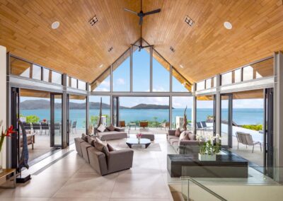 - All rooms offer sea views through retractable floor-to-ceiling doors