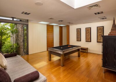 Also on this garden level, a split-level home theater with garden views, and a communal family area equipped with a pool table where guests can regroup between outings or even treat as an additional media room. Benyasiri is one of two villas with a ping pong table, located on the terrace by the pool.