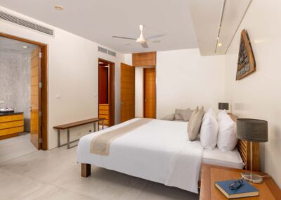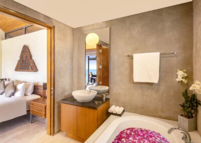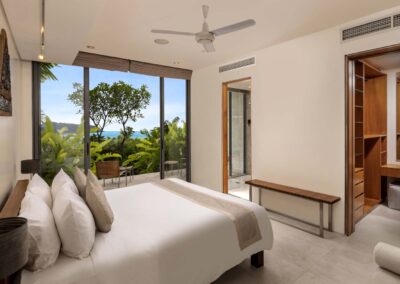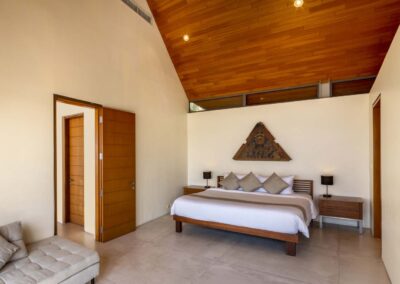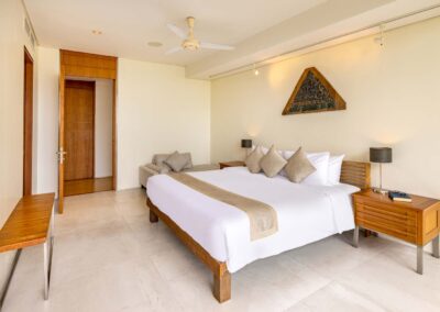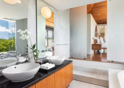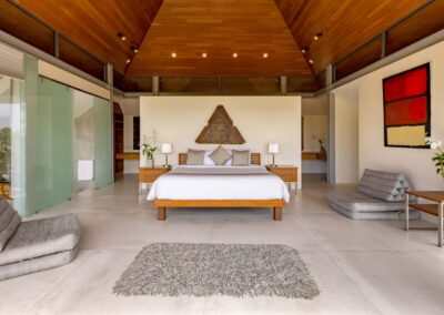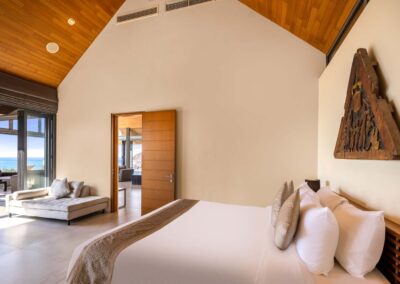 An ideal holiday home for entertaining, Benyasiri has expansive alfresco dining areas, with a barbecue and 10-seater dining table that offers guests commanding ocean views. The villa’s wide terraces lead to a secluded open-air sala to one side for more intimate gatherings, whether it’s a morning yoga session or dinner for two.
