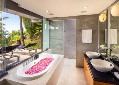 Positioned high on the headland and providing sweeping coastal views, the 5-bedroom Benyasiri offers a sophisticated seaside stay within a short drive of Patong and Kamala. Upgraded in 2021, the villa is perfect for family vacations, romantic getaways and even corporate events and retreats. Villa Benyasiri’s beautiful modern interiors and spectacular views exemplify luxury waterfront living.