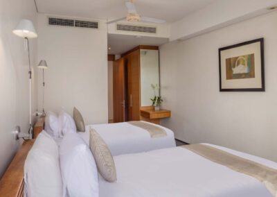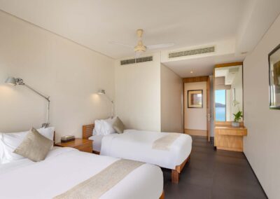 | Bedroom 4 | Sea / Garden | (2) Twins * | – | – | w/ Bed 5 | w/ Bed 5 | – | – | |