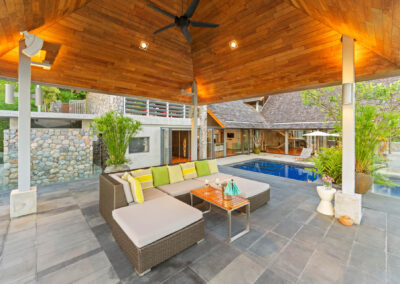 - Outdoor Thai sala can double as open air, seaview yoga pavilion