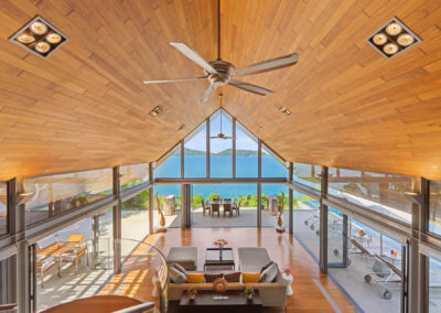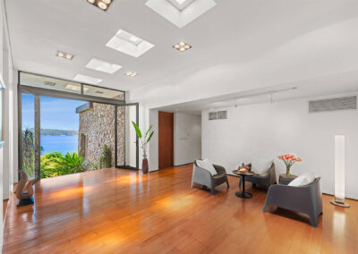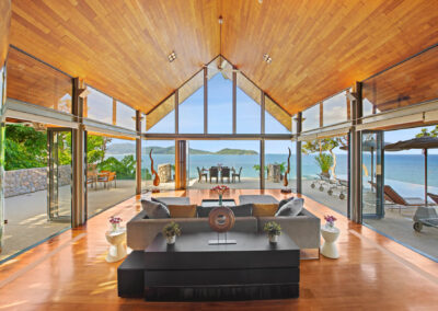 - All rooms offer sea views through retractable floor-to-ceiling doors