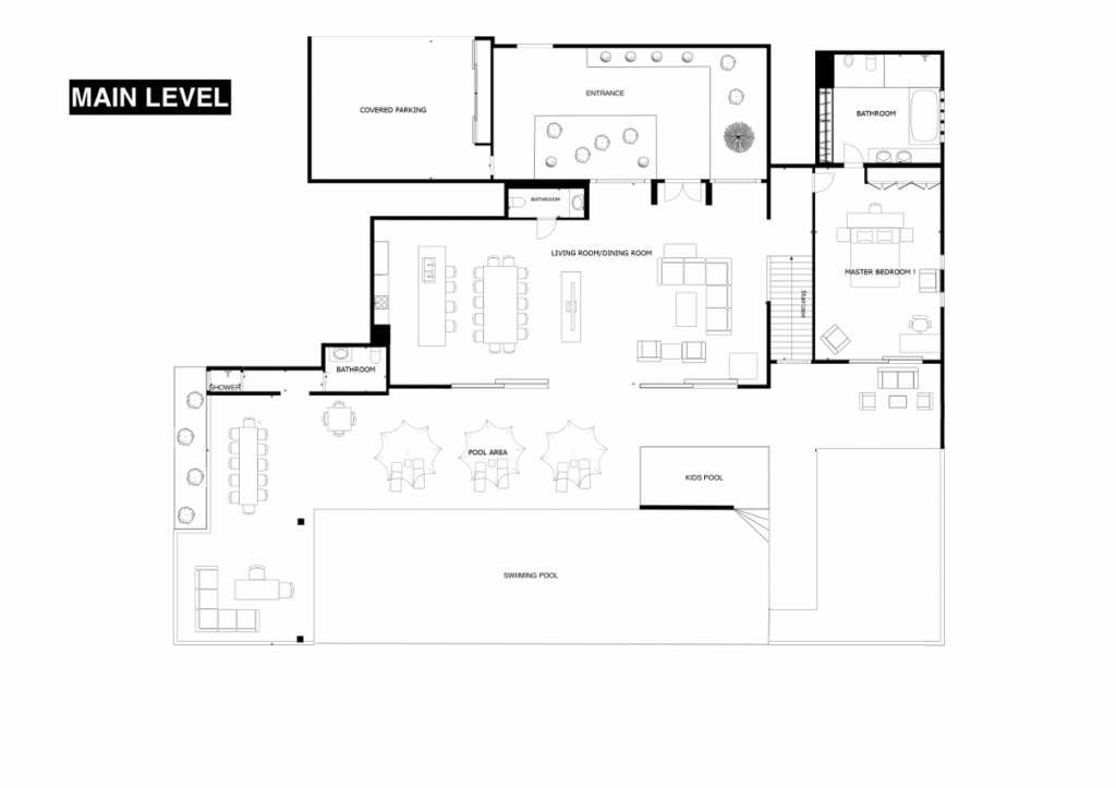 - Infinity swimming pool (20 m x 5 m x 1.4 m)