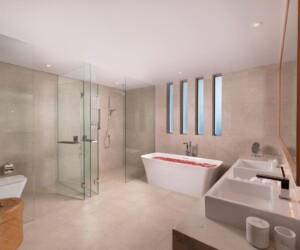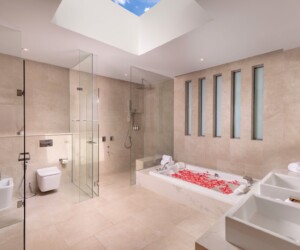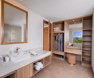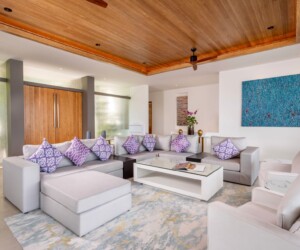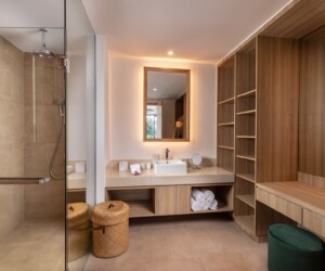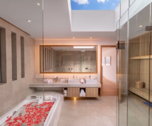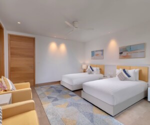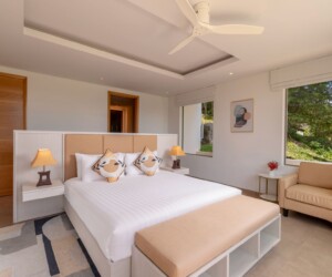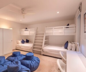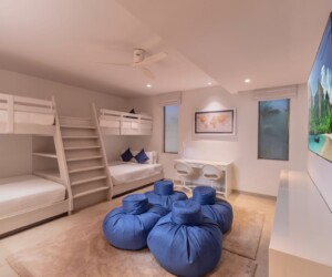 Each luxurious bedroom offers a serene escape, adorned with plush furnishings, private balconies, and ensuite bathrooms. The villa’s two master bedrooms boast elegant spaces, bathtubs and ocean views, while other guest rooms provide lush garden or sea views. The vibrant twin-over-full bunk bed is also complete with bean bags and an ensuite bathroom.